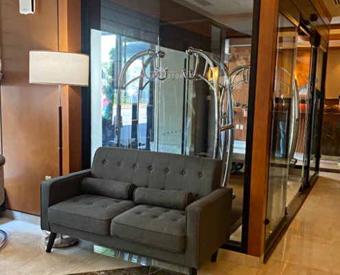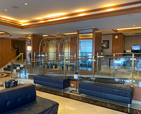 And if the light-filled lobby with picture windows overlooking Broadway – and the Fairway Supermarket across the street – is more functional than fanciful, there’s usually plenty of room on an upholstered sofa or slipper chair to sip a coffee (Starbucks is a block away), peruse the paper (copies of the New York Times are stacked on a table) and watch a passing parade of tourists, business people, families, artists and the occasional local, often with a bag of groceries, chatting with a friend.