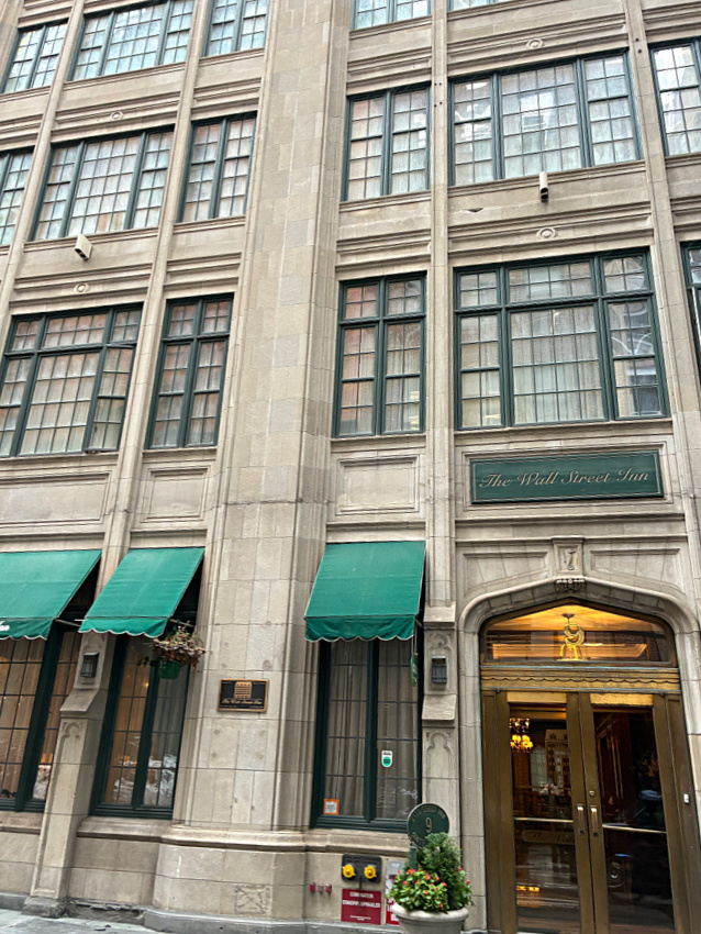 Still, this cozy small hotel resides on a quiet corner in the Financial District, not far from its namesake and the New York Stock Exchange, and keeps easy company with other low-slung buildings that appear plucked from 18th-century London.